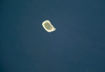 Manihiki is an atoll of the Northern Cook Islands, being located 43 km southeast from Rakahanga. The atoll, which is around 4 km across, consists of some 40 reef islets surrounding a deep cental lagoon which has no entrance passages to the open ocean. The islets of Manihiki have a combined land of area of 5.4 km² — the largest being the long and narrow Ngake which forms the entire northeastern border (bottom side in the above image) to the atoll. Dotted within the lagoon are are a number of tiny islets and numerous coral heads.